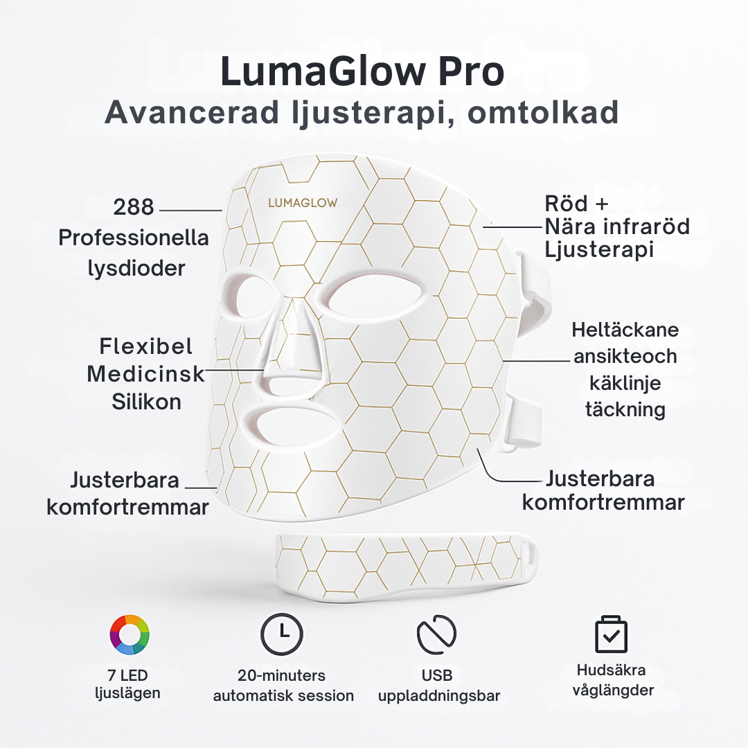 En bra LED-mask är ett måste i din hudvårdsrutin för optimala resultat och hudhälsa. LumaGlow erbjuder både infrarött och djupt infrarött ljus för maximala fördelar!